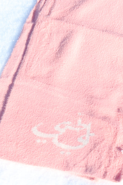 A soft fur scarf finished with the signature ASILI Arabic logo in white. Cozy, sleek, and a bold winter essential that pairs with any fit.