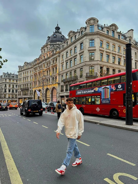 The AL ALIS Hoodie comes in the color sugar white . The Hoodie features 2 of the most popular Alis ; Mohamed Ali the American Professional Boxer as well as Mohamed Ali Pasha the Ottoman ruler. The front of the hoodie is plain with a tiny baby pink embroidery of the word “أصيلي”. Whilst the back is an illustration of both Alis