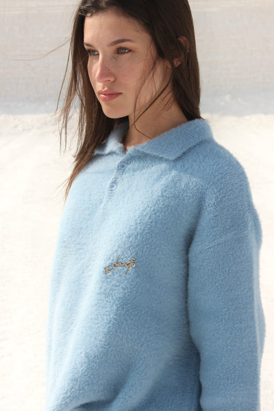 he Asili Ultimate Fur sweater is a soft touch long-sleeve fur sweater with polo collar and front button fastening. Featuring a metal piece on the left side of the chest of the word ”أصيلي".